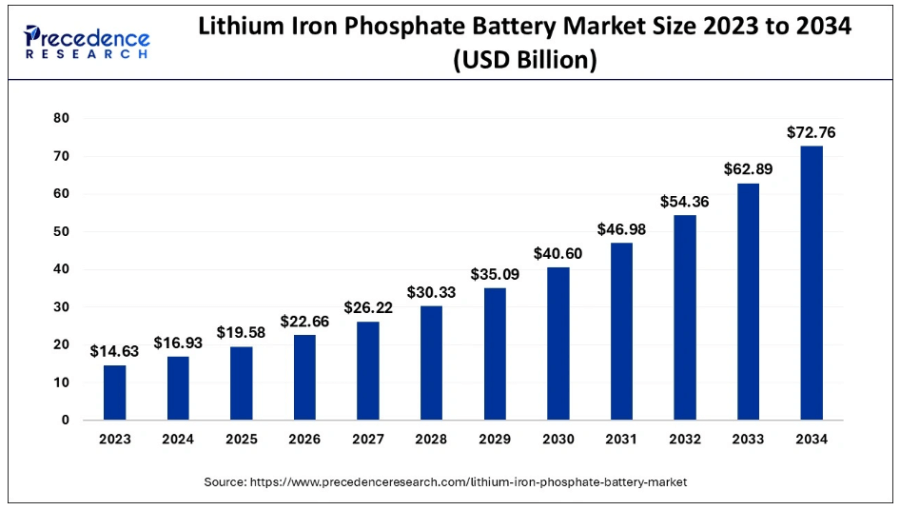 Source: Precedence Research - Marché des batteries LFP en croissance constante.